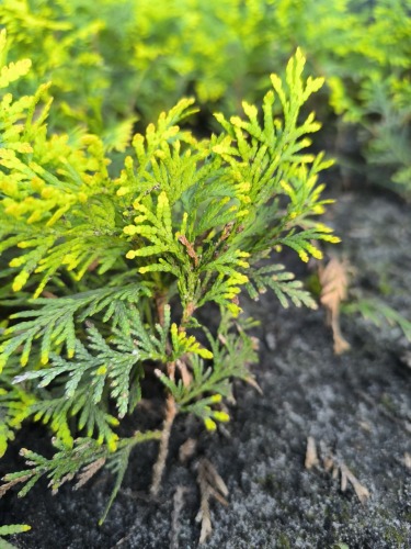 Восточная Туя Книжка 15-20 см. Прекрасно смотрится в колористической хвойной композиции на фоне тисов с темной зеленью, голубых елей и ажурных сосен.
